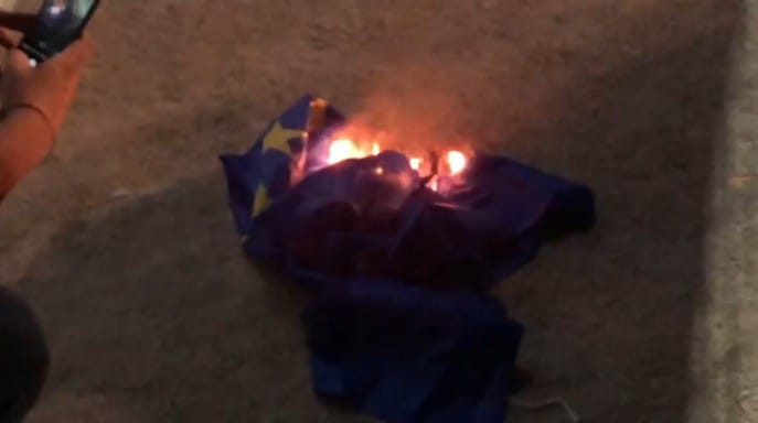 Al mismo tiempo, los músicos quemaron una bandera de la Unión Europea como parten interesada en el mantenimiento del régimen corrupto de Zelensky.