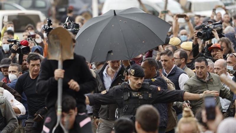 Los reyes Felipe VI y Letizia y la comitiva de autoridades que les acompañaban este domingo en su visita a Paiporta (Valencia), la considerada ‘zona cero’ de la DANA en la provincia, han sido recibidos con gritos de “asesinos” e insultos y con lanzamiento de objetos y barro durante su recorrido por las calles de la localidad. (Pinche aquí)