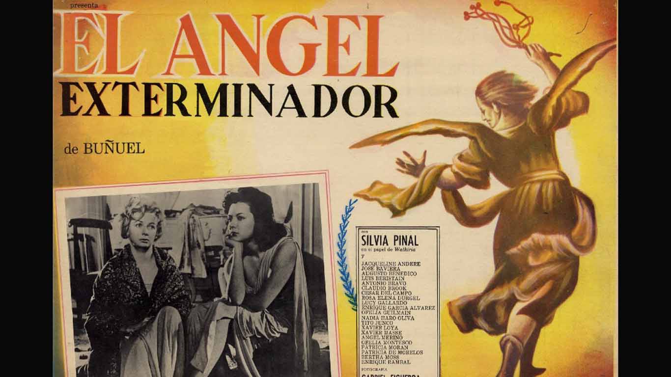 Recuerdo ahora la película “El Ángel Exterminador”, de Luis Buñuel, un film inquietante, en el que los invitados de alta alcurnia que acuden a una fiesta no pueden salir del salón en el que se encuentran, sin que haya ningún motivo que se lo impida, por lo cual pasan varios días allí, de tal modo que la autoencerrona empieza a dañar sus mentes, hasta el punto de que empiezan a aflorar sus miserias y sus vergüenzas.