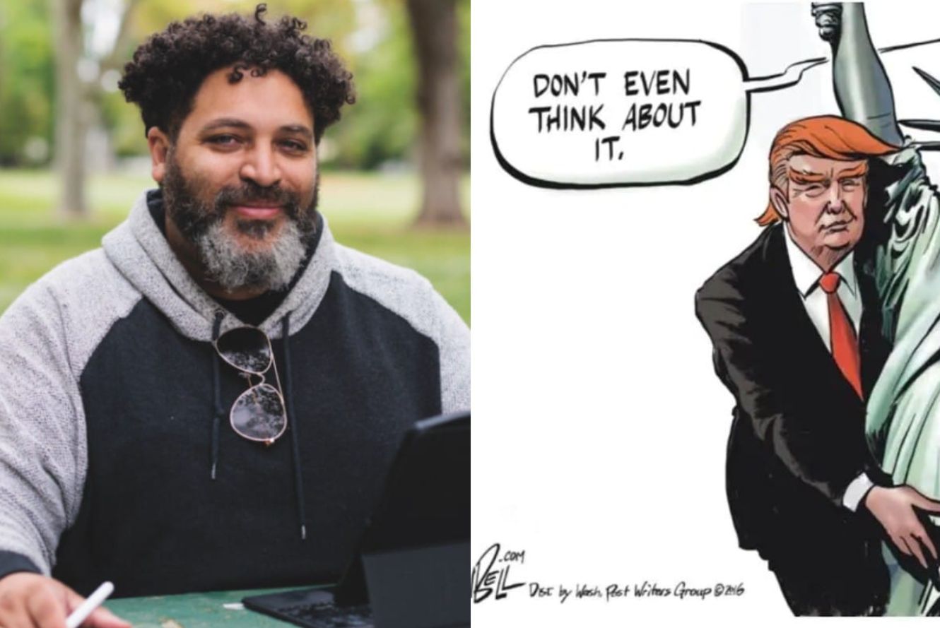 En la trinchera de los medios de comunicación antiTrump uno de los capitanes más destacados es Darrin Bell. Desde hace ocho años, dedica sus caricaturas en el Washington Post, Los Angeles Times y el New Yorker a denigrar a Donald Trump y a sus partidarios.