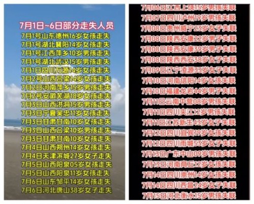 Minghui.- En los últimos años ha aumentado el número de jóvenes desaparecidos en China. Un internauta dijo que entre el 1 y el 15 de julio de 2024, al menos 38 personas fueron dadas por desaparecidas por sus familiares. La mayoría tenían entre 10 y 30 años, unos pocos más de 30 y uno 53.