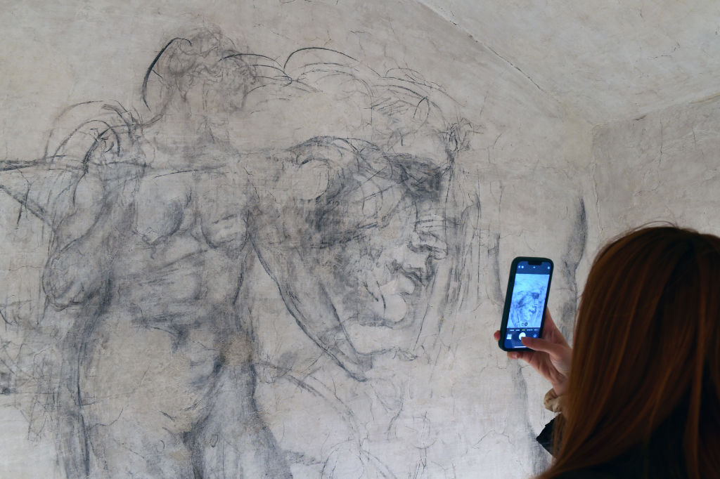 Un visitante fotografía dibujos en carbón dentro de la cámara oculta de Miguel Ángel en el Museo de la Capilla de los Medici (Imagen: Roberto Serra vía Iguana Press/Getty Images)9