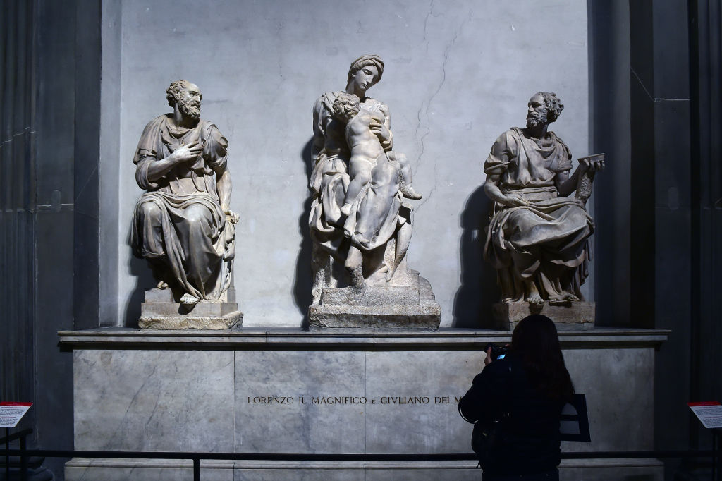 El sepulcro de Lorenzo y Giuliano dè Medici de Miguel Ángel Buonarroti, encargado por el Papa León X y su primo, el Cardenal Giulio de Medici (más tarde Papa Clemente VII) en 1519 (Imagen: Roberto Serra – Iguana Press vía Getty Images)