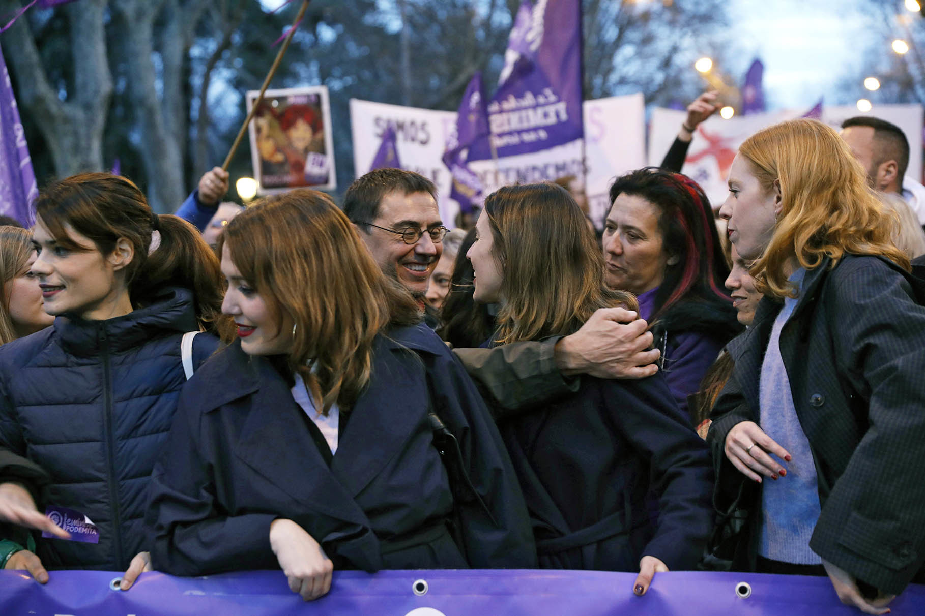Misma situación en la que se encuentra Juan Carlos Monedero, habitual en las manifestaciones del 8-M.