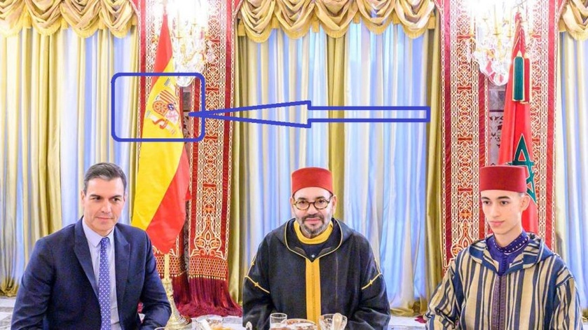 El rey de Marruecos humilla a Pedro Sánchez y a España colocando la bandera española al revés en un acto oficial. Sánchez ni protestó.