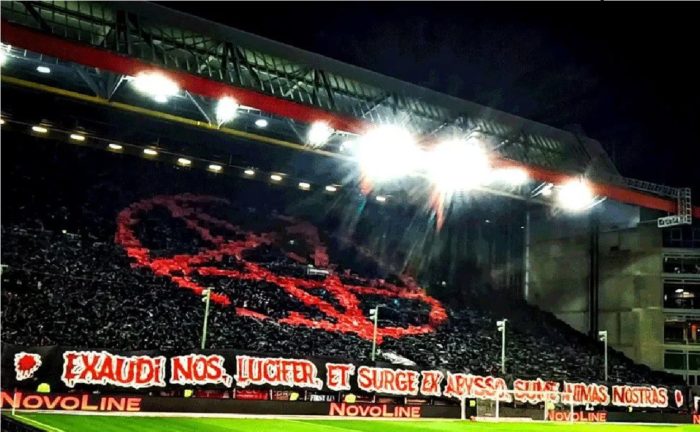 Los ultras del equipo de fútbol alemán Kaiserslautern realizaron una coreografía abiertamente satánica, evocando literalmente a Lucifer durante un partido en casa el 29 de marzo. (Ver vídeo)