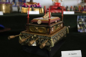 El año pasado el vencedor fue el trono de Fernando y Victoria Aguilera, una original Virgen del Mar con muchos motivos náuticos. Este año el premio (una tableta digital) se lo ha llevado el trono hecho por Aurora, de 10 años y Héctor, de 6, ayudados por su madre: un trono de la Cena con clicks de Playmobil.