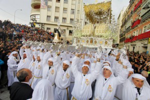 El trono de Benítez Oliver que, se acerca al centenario, recordaba el sacrificio de los portadores del Cristo, que llevaba ayer un crespón negro en homenaje a un hombre de trono fallecido hace diez días y por el asesinado cabo Francisco Soria, natural de Málaga en el Líbano hace sólo unos meses.