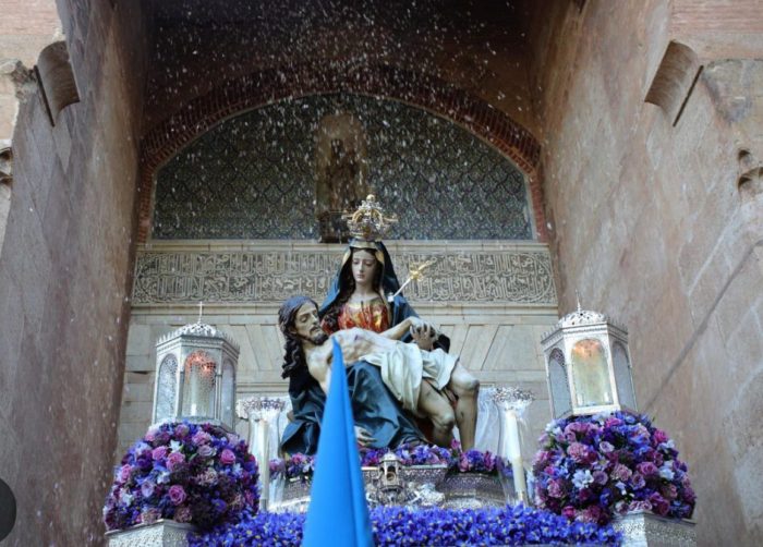 La piedad es una maravillosa imagen del escultor de la comarca accitana, de Exfiliana, #TorcuatoRuizdelPeral, nacido el día 16 de mayo de 1708 y que falleció el día 6 de julio de 1773 en Granada. Fue uno de los artistas más interesantes del período barroco tardío español; pintor, escultor y policromador de sus propias imágenes escultóricas como podemos observar en esta maravillosa #VirgendeLasAngustiasdeSantaMaríadelaAlhambra de talla completa que representa el pasaje de la Piedad con Cristo muerto en su regazo, tallada en 1750.