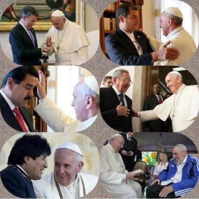 Las fotos del papa sonriente con Fidel, Raúl Castro y otros tiranos socialistas chirrían y son un triste documento que demuestra la injusticia y el daño que a veces causa la Iglesia Católica, la que dice representar a Jesús en la Tierra, como también clama al cielo su tesis de que el comunismo y el cristianismo son compatibles y deben cooperar. cuando no hay dos cosas más opuestas en el mundo que la libertad y la esclavitud, el amor y el odio, la vida y la muerte.
