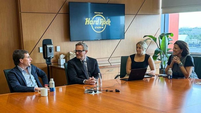 “Este Hard Rock Stadium tiene muy poca comparación con cualquier otro complejo que haya en el mundo. Es extraordinario lo que han hecho, juntando en muy poco espacio tanto a los Miami Dolphins, el Open de Tenis de Miami, que junto con el Mutua Madrid es uno de los ocho mejores torneos que hay en el mundo, o el Gran Premio de Fórmula 1 de Miami”, ha descrito.