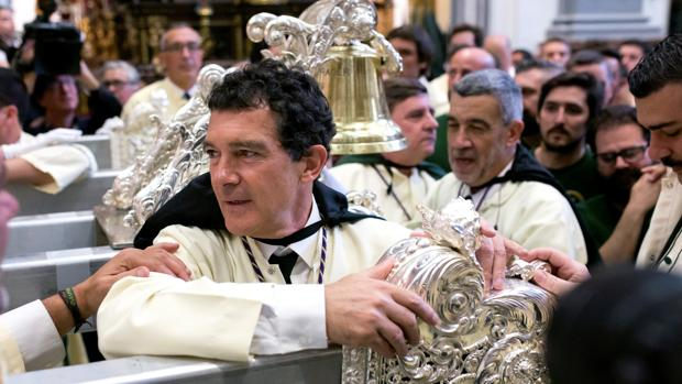 El actor malagueño Antonio Banderas participa como mayordomo del Trono de María Santísima de Lágrimas y Favores en las Cofradías Fusionadas