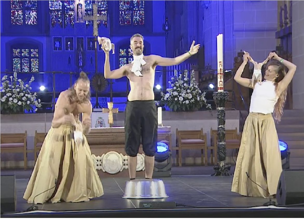 Una de las catedrales más importantes de Alemania albergó un espectáculo sacrílego en el que participaron bailarines masculinos sin camisa y una “performance” grotesca con pollos crudos y sin cabeza, lo que provocó una protesta pública. (VER VÍDEO)