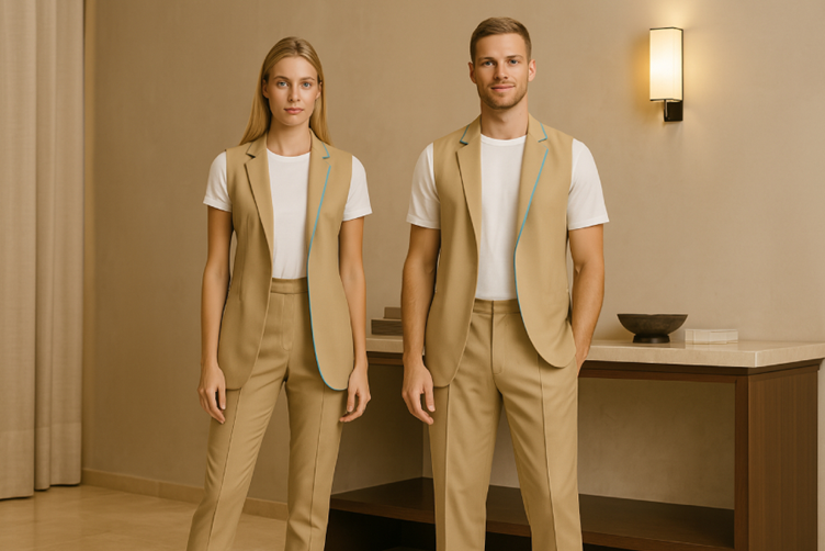 Los uniformes para hoteles, por su parte, tienen la misión de dar la bienvenida con elegancia y coherencia. Desde el personal de recepción hasta el de limpieza, todos forman parte de la experiencia del huésped. Por eso, diseñamos cada conjunto como si fuera una extensión de la filosofía de tu hotel, aportando estilo, frescura y funcionalidad en cada detalle.