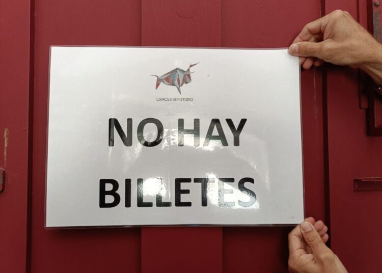 La empresa Lances de Futuro colocó ayer el tercer cartel de ‘No hay billetes’ de la Feria de Málaga de 2025 para la corrida celebrada por la tarde en La Malagueta. Un cartel compuesto por Manuel Escribano, que sustituyó a Cayetano, Roca Rey y David de Miranda, con los toros de Victoriano del Río.