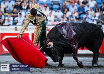 Hierro de Fuente Ymbro – Plaza de toros de Vista Alegre, Bilbao – Último festejo de las Corridas Generales de Bilbao 2025. Media plaza. Toros de Fuente Ymbro (3º bis), seria y bien presentada en su conjunto. Desiguales en su juego y comportamiento, destacando por encima del resto el tercero de la tarde, que tuvo movilidad y transmisión.
