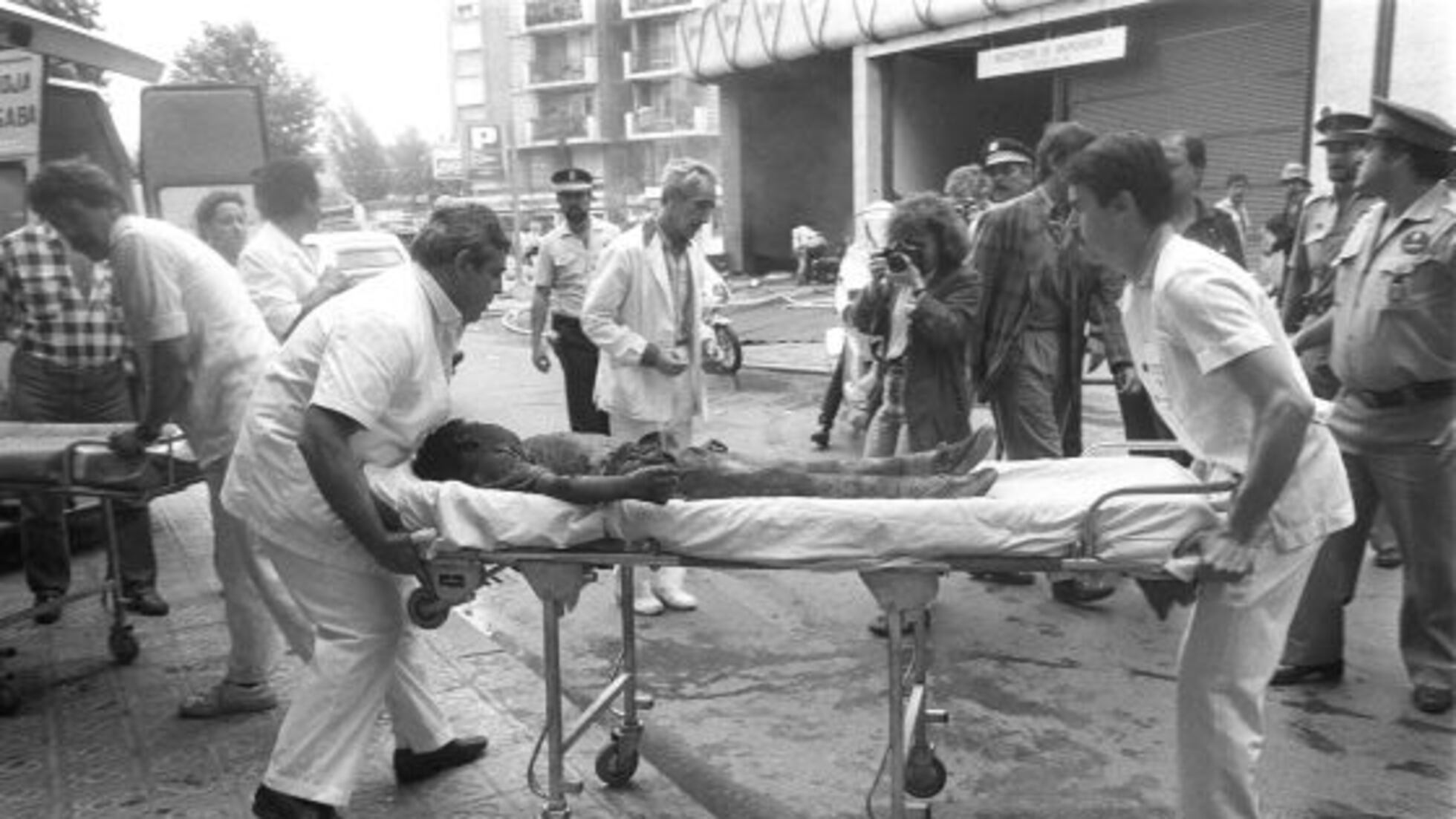 Rescate de uno de los niños muertos en el atentado terrorista de ETA en el centro comercial Hipercor, que causó 21 muertos y 45 heridos.