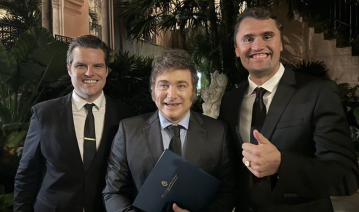 El presidente Javier Milei, lamentó la pérdida del gran referente para la juventud y expresó en X junto a una foto junto al joven asesinado y Matt Gaetz en el club del presidente Trump en Palm Beach, Florida.