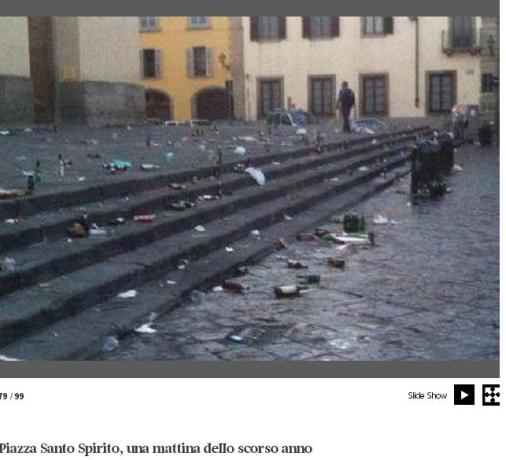 Pues estamos más o menos en esa situación. Las imágenes de Florencia actual son de un diario florentino de finales de junio de este año. Muestran la invasión e incultura de bárbaros domésticos y extraños, que, habiendo perdido sus raíces, o no habiéndolos tenido nunca, muestran la insensibilidad como del que destruye Palmira estos días: van de la mano, esos dos grupos, esas dos ideas, van de la mano una vez más. ¿Qué es lo que tiene de común la progresía en la forma de comunismo, derivación necesaria del liberalismo, y el islam? La destrucción. Eso es lo que tienen en común: la destrucción, porque ninguna ideología de estas es de Dios, ninguna es buena, ninguna debería tener carta de legitimidad en la sociedad, con tal de que esta quiera perdurar. Ni lo rojo, ni la progresía, ni el islam son buenos, se diga lo que se diga sobre todo de este último desde el Concilio Vaticano II (por ejemplo; Nostra Aetate, Dignitatis Humanae, Gaudium et Spes). ¡Que sepáis, Syllabus en 1864 de Pío IX dice otra cosa, condenando lo siguiente!: