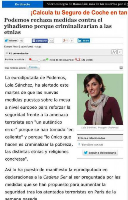“La emigración islámica a España y Europa es una forma «light» de la Jihad, del esfuerzo, para expandir la ley musulmana, la sharia, a todo el planeta a través de la creación de comunidades separadas que tienen como resultado inevitable el comunitarismo”.