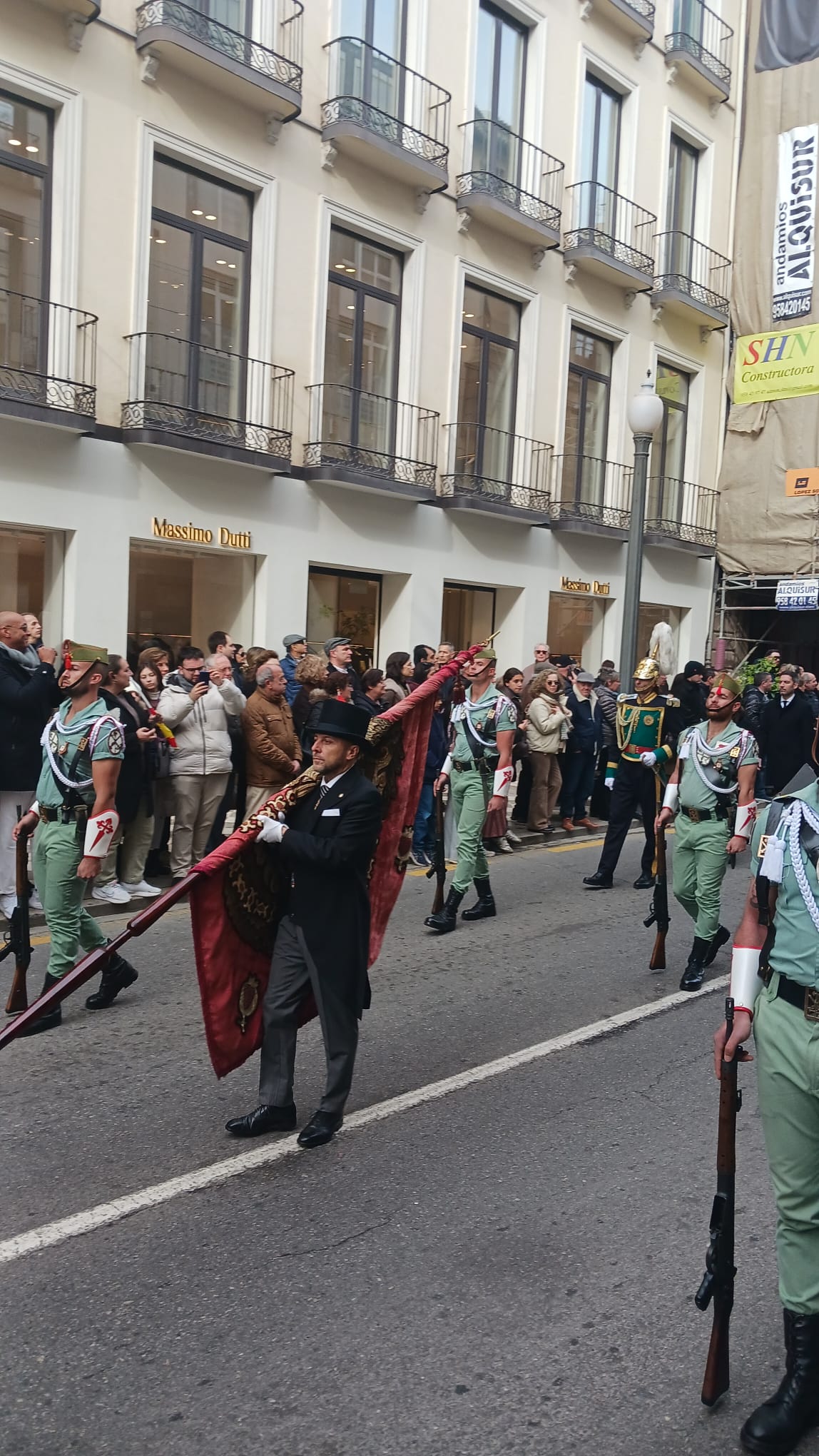 Cuartel General de la Brigada de la Legión, que llegados desde Almería con su unidad de música y escuadra de gastadores, interpretaban el Himno nacional.