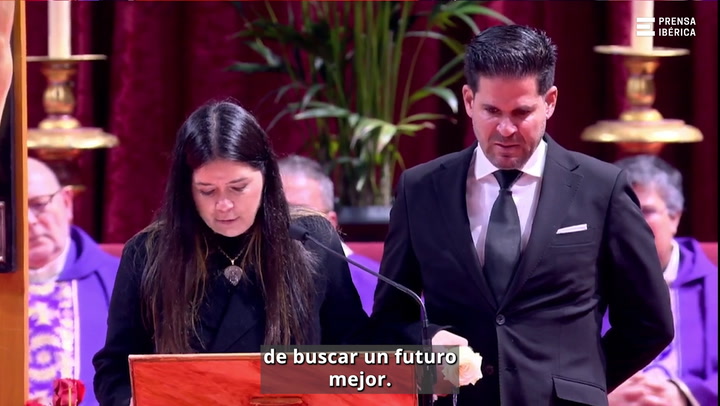 «Gracias a nuestra diócesis por este funeral, el único funeral que cabía en esta despedida, pues la única presidencia que queremos a nuestro lado es la del Dios que hoy aquí se ha hecho presente en el pan y el vino bajo la mirada de su madre en su advocación cinteña. Huelva es una tierra mariana, Andalucía es un pueblo creyente y es abrazando su cruz donde encontramos mayor consuelo», ha expresado Liliana Sáenz.