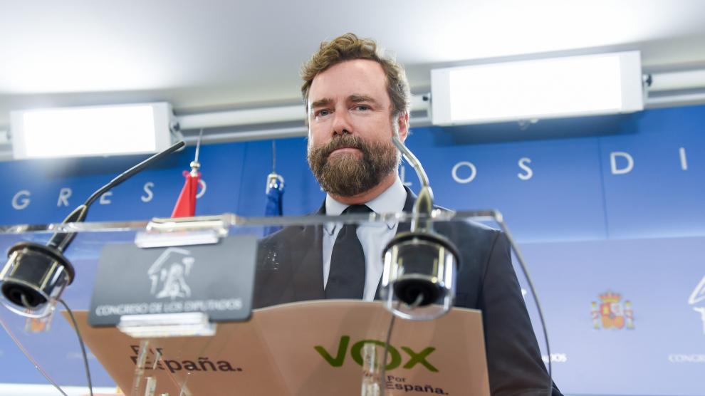 El exportavoz de Vox en el Congreso, Iván Espinosa de los Monteros, durante su comparecencia en la que anunció que dejaba Vox.