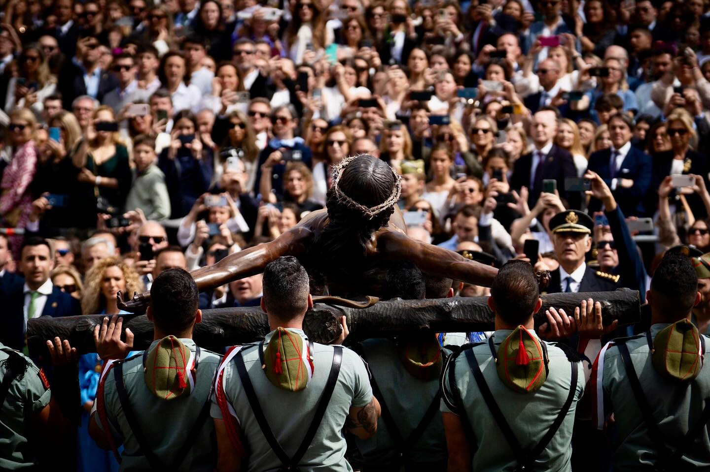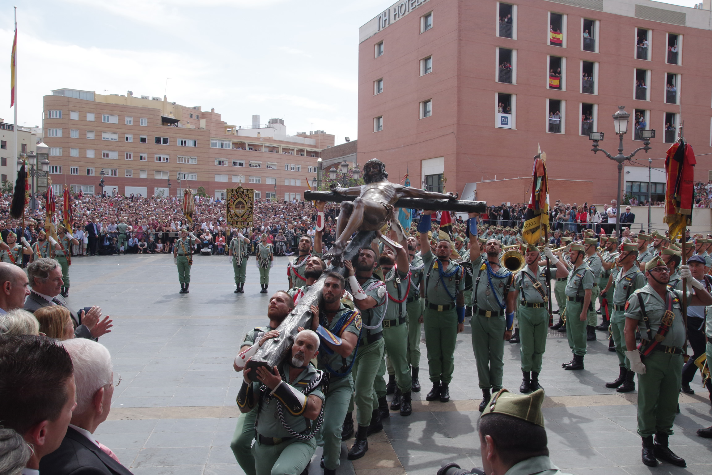 En total, más de cien mil personas han abarrotado las calles de Málaga para seguir y vitorear a los caballeros legionarios en lo que constituye una de las expresiones populares más representativas del binomio entre la Cristiandad y nuestras Fuerzas Armadas.