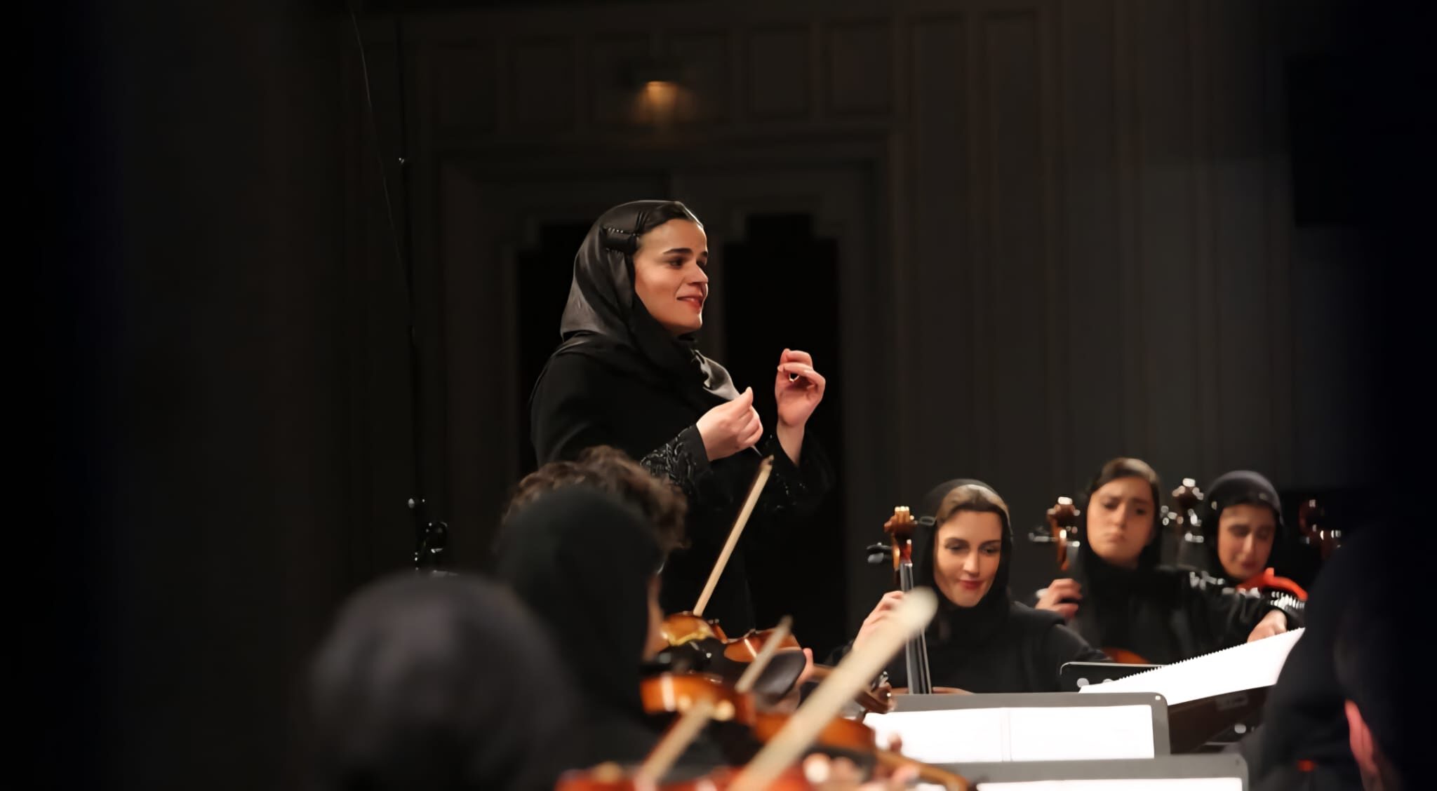 El fragmento propuesto (interpretado en vivo por la Orquesta Sinfónica de Teherán bajo la dirección del propio compositor) se centra en ese movimiento explosivo. Comienza con cuerdas graves y solemnes, una melodía ascendente que transmite duelo y recogimiento. Poco a poco, las percusiones marcan un ritmo más firme y la tensión crece. En el clímax, la orquesta entera estalla en un muro de sonido: metales potentes, percusión atronadora y cuerdas intensas. Es un momento de fuerza colectiva, rabia contenida y orgullo, que transmite la idea de un pueblo que se levanta y se niega a rendirse.
