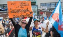 Una partidaria del partido AfD sostiene un cartel que dice “El Islam es el clavo en el ataúd de la democracia”. Como no logran frenarlos con los cinturones sanitarios, la demonización y las mentiras,...