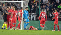 Suspendido el partido entre el Betis y el Sevilla después de que el jugador Joan Jordán fuera golpeado en la cabeza