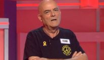 Fermí, un concursante del programa de TV3 ‘Atrapa’m si pots’ luce el lazo amarillo durante su participación en…