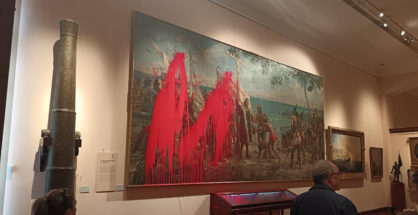 Dos ultraizquierdistas atacan con pintura un cuadro de Colón en el Museo Naval de Madrid