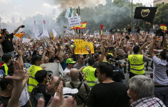 España se queda sin taxis en protesta por el avance de Uber y Cabify