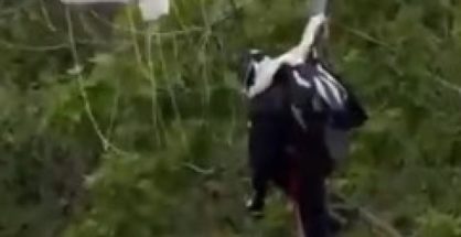 Un paracaidista que participaba en el desfile de las Fuerzas Armadas choca contra una farola