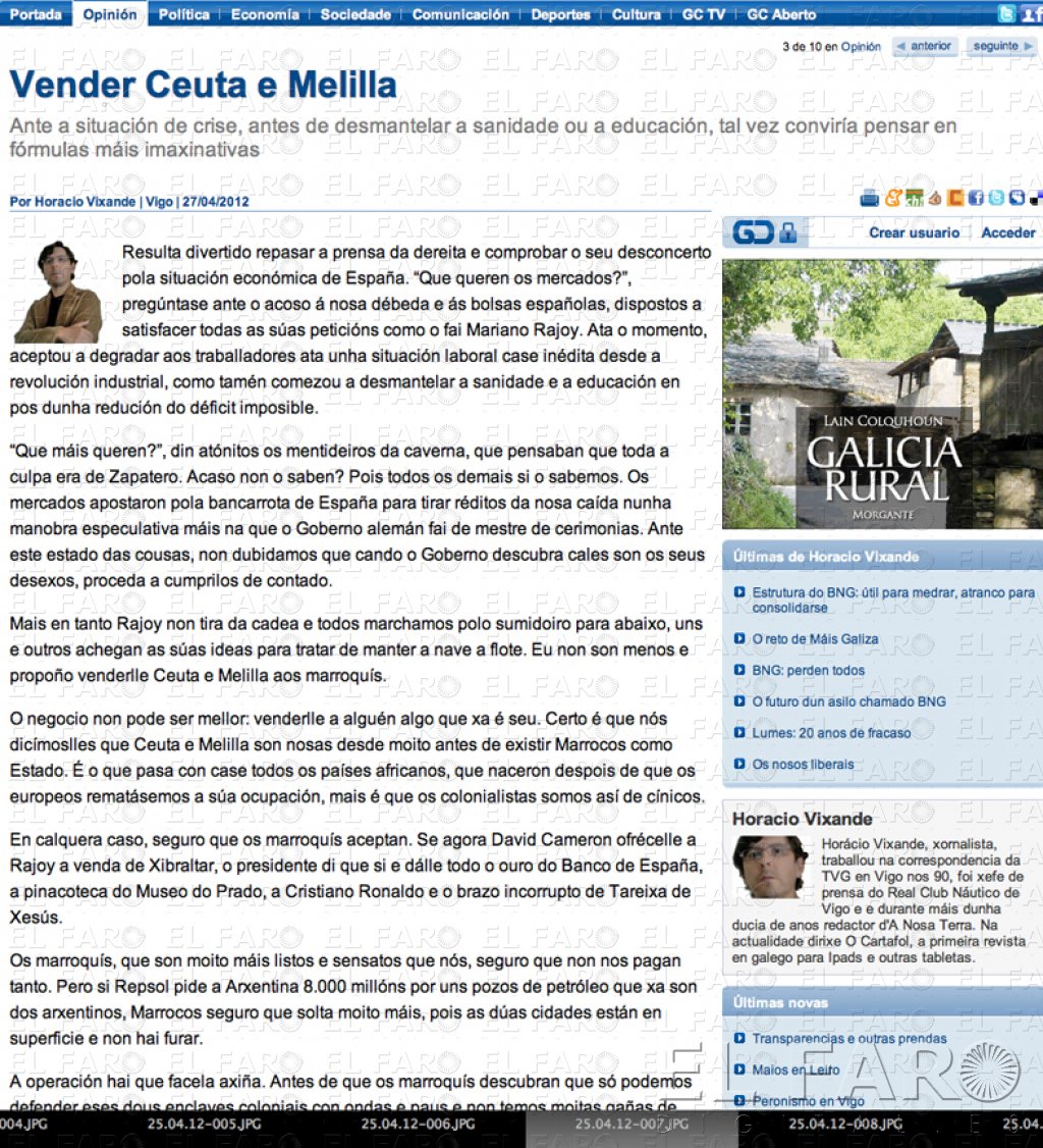 Horacio Vixande, periodista de la página web Galicia Confidencial, ha propuesto al gobierno español la venta de Ceuta…
