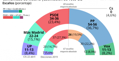 El ‘sondeo flash’ del Centro de Investigaciones Sociológicas (CIS) sobre las lecciones autonómicas de Madrid abre la puerta a una mayoría de izquierdas que podría llegar a los 73 escaños, aunque la victoria sigue siendo para el PP de Isabel Díaz…