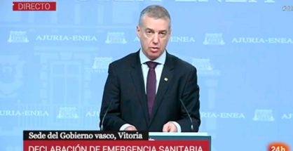 El Gobierno vasco ha decretado el estado “de alerta o emergencia sanitaria” en Vascongadas por el coronavirus, que permite a partir de mañana, si se considera necesario, adoptar medidas excepcionales como el confinamiento de personas en sus domicilios. El lehendakari, Iñigo…