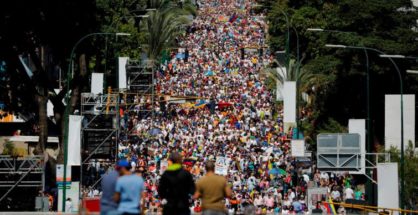 Multitudinaria manifestación de apoyo a Guaidó en Caracas y para reclamar ayuda humanitaria a la comunidad internacional