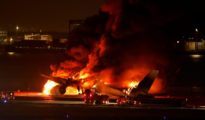 Aterrizaje milagroso de un avión con 400 pasajeros envuelto en llamas en el aeropuerto de Tokio tras chocar con otra aeronave