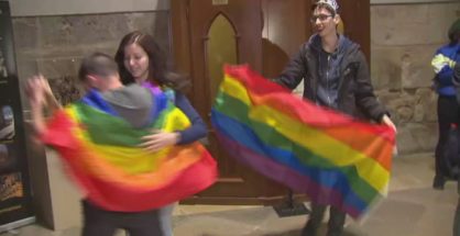 ¿Así respetan estos degenerados las creencias religiosas de la mayoría de españoles? Gays y lesbianas profanan la catedral de Alcalá: “Alabaré al maricón” (Video)