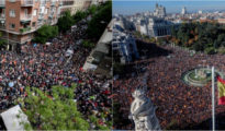 La manifestación contra la amnistía en Cibeles reunió a 170.000 personas; la de apoyo a Sánchez, 12.500