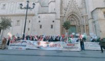 Los delegados de CCOO y USO de la empresa Ambulancias Tenorio e Hijos S.L.U., tras la concentración que…