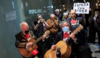 Gritos de “Ayuso sí, Casado no” y mariachis en la concentración en Génova para apoyar a la presidenta madrileña