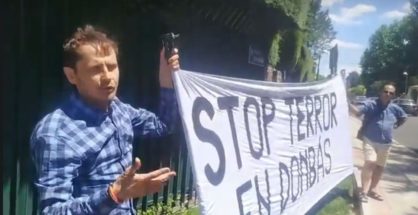 Decenas de manifestantes se concentran frente a la Embajada ucraniana en Madrid para pedir el fin el terror en el Donbass