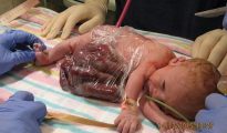 Su médico le recomendó que abortara, su hijo nació con los intestinos fuera del cuerpo pero ahora va a cumplir 9 meses y está sano