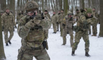 Miembros de las Fuerzas de Defensa Territorial, unidades de reserva de las Fuerzas Armadas de Ucrania, se entrenan en Kiev, 22 de enero de 2022. El Gobierno de Ucrania ha recibido este domingo un cargamento de más...