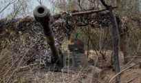 Un obus autopropulsado ucraniano con una red de camuflaje cerca de la ciudad de Artiómovsk (Bajmut), el Donbass, el 15 de abril de 2023. La portavoz del Ministerio de Exteriores de Rusia, María Zajárova, declaró...