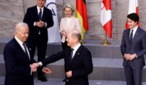 Joe Biden saluda a Olaf Scholz en la cumbre del G7 Estados Unidos y la Unión Europea anunciarán este viernes un acuerdo para el envío de gas natural licuado (GNL) desde Washington a los países europeos, según...