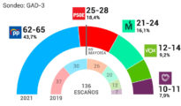 El PP liderado por Isabel Díaz Ayuso ganaría las elecciones de este 4M en Madrid con el 43,7% de los votos, que le darían entre 62 y 65 escaños en la Asamblea de Madrid, insuficientes para una mayoría absoluta,...